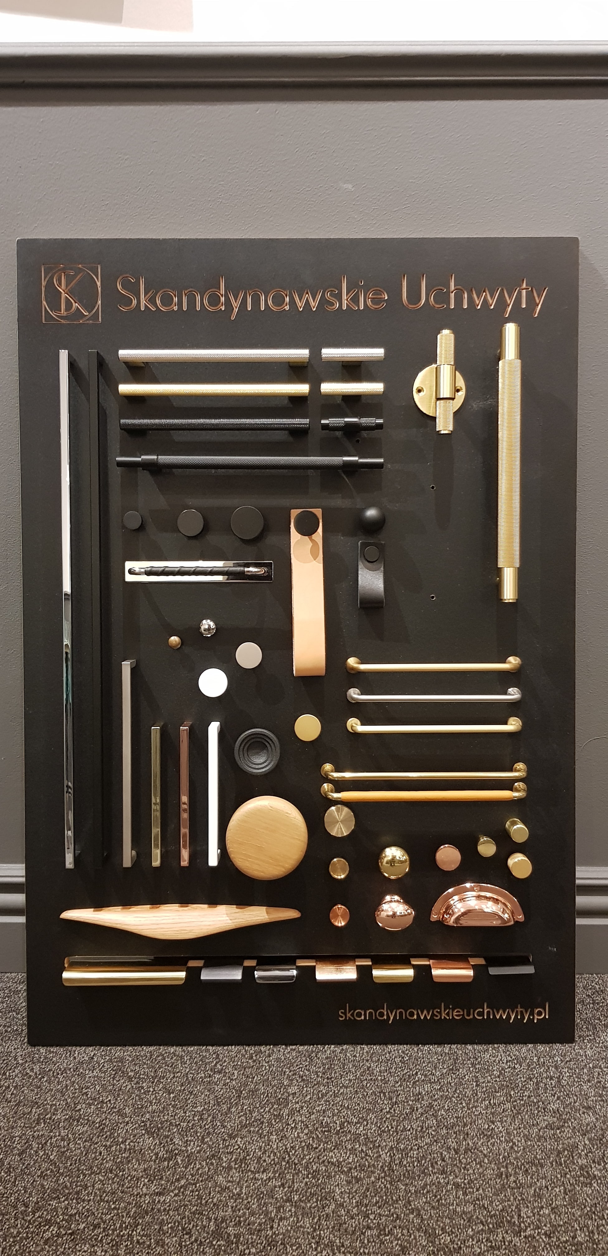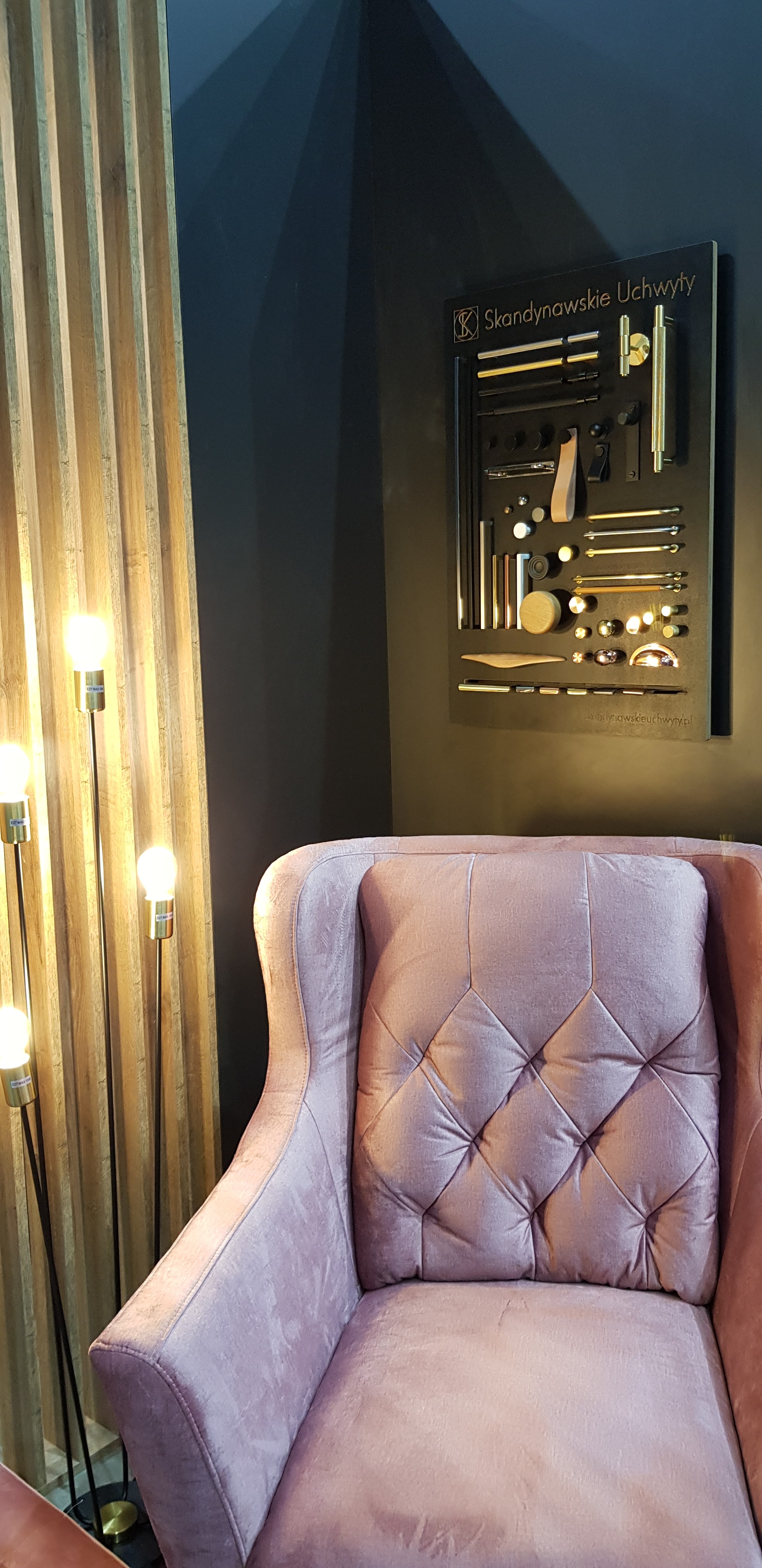 Мебельные ручки и светильники представлены красиво и подчеркнули современный и роскошный характер мебели. Кроме того, наш дисплей был также увешан другими ручками: кожаными, медными, натуральными и лакированными. Вы можете прийти, увидеть и потрогать кожаные, деревянные, медные, латунные, стальные и алюминиевые ручки и ручки. Мы также продемонстрировали наши дубовые вешалки NORA, краевые и натуральные ручки, ручки Open и Hide, сделанные в Польше мастерами.