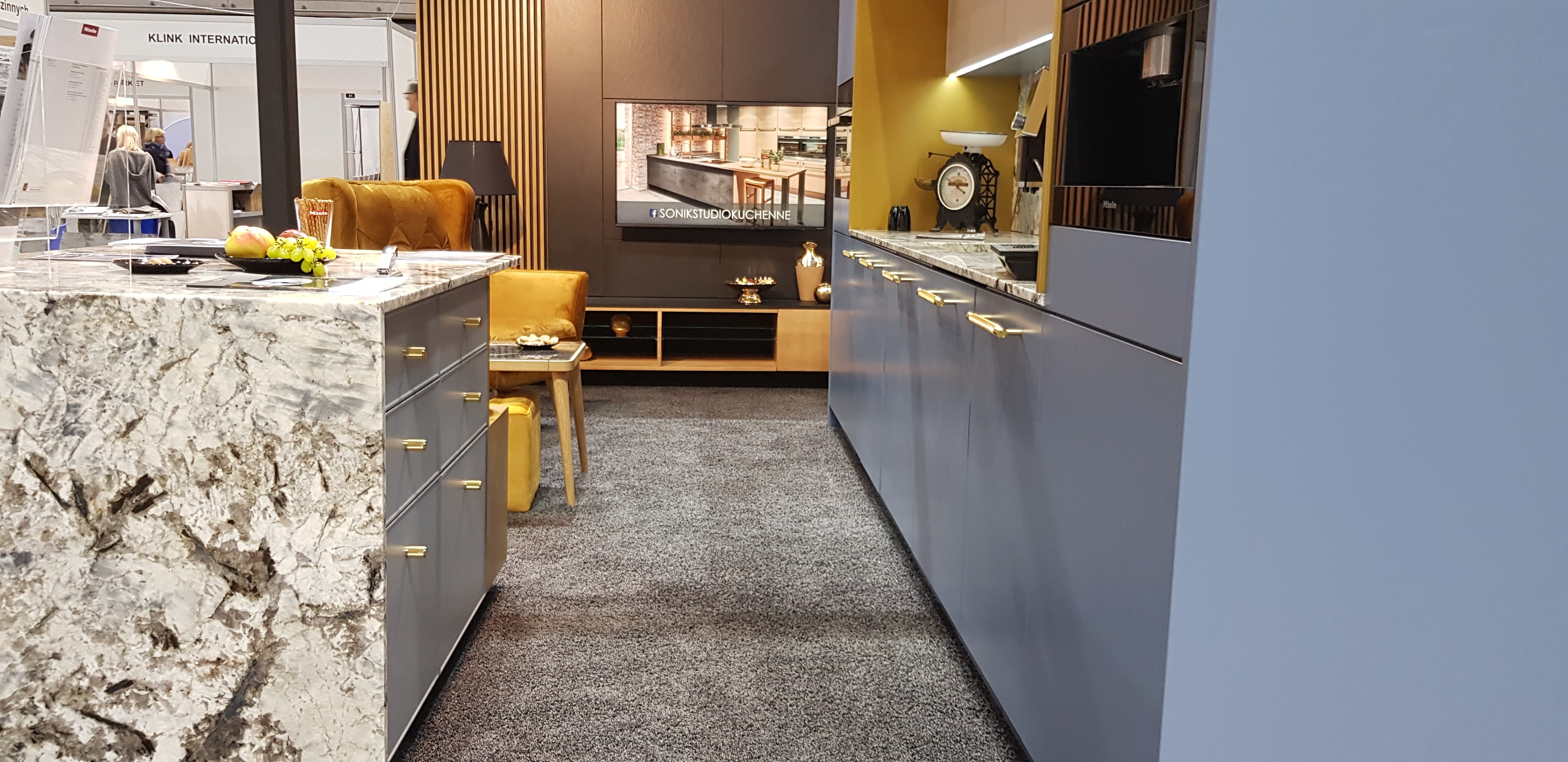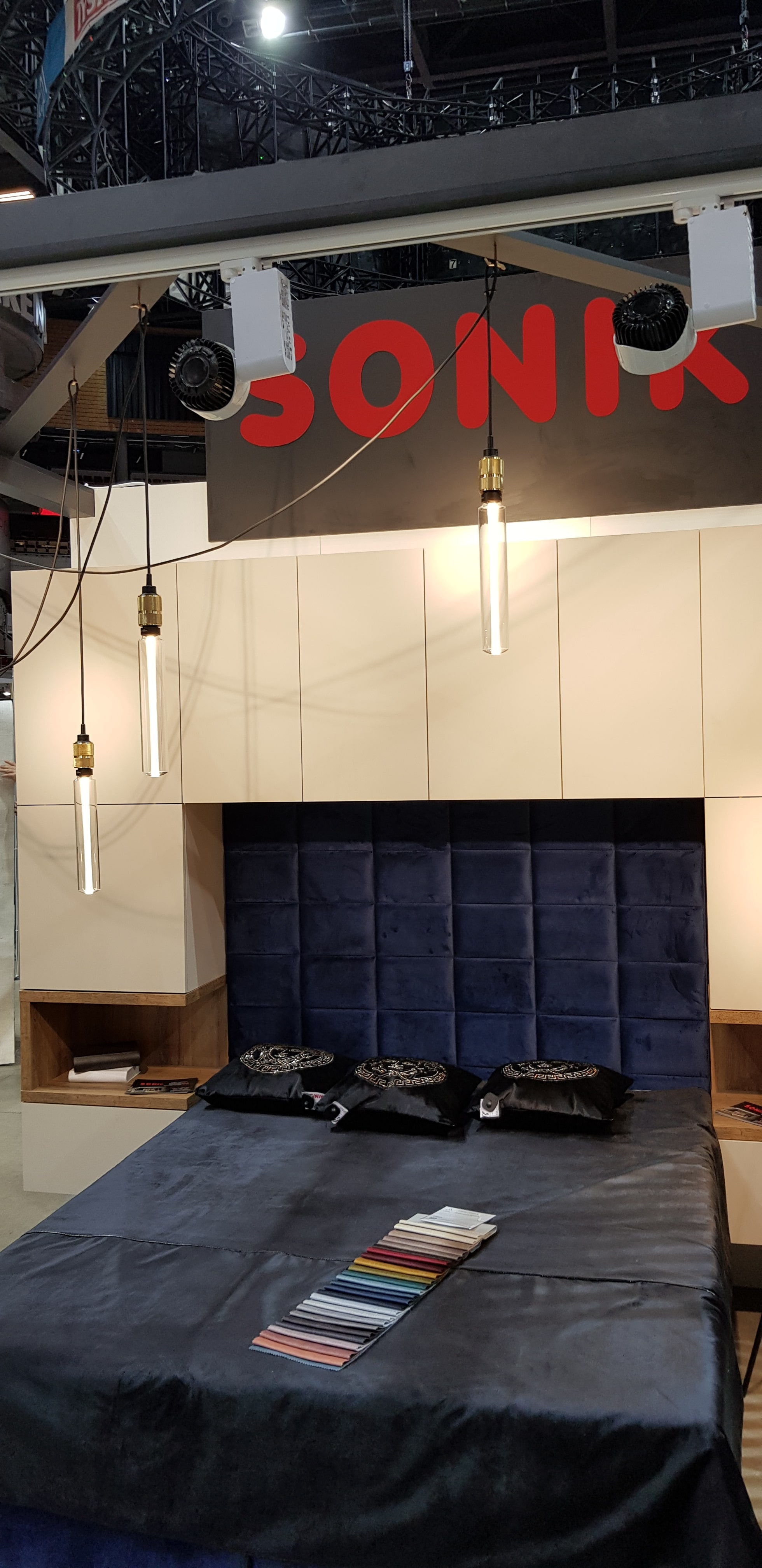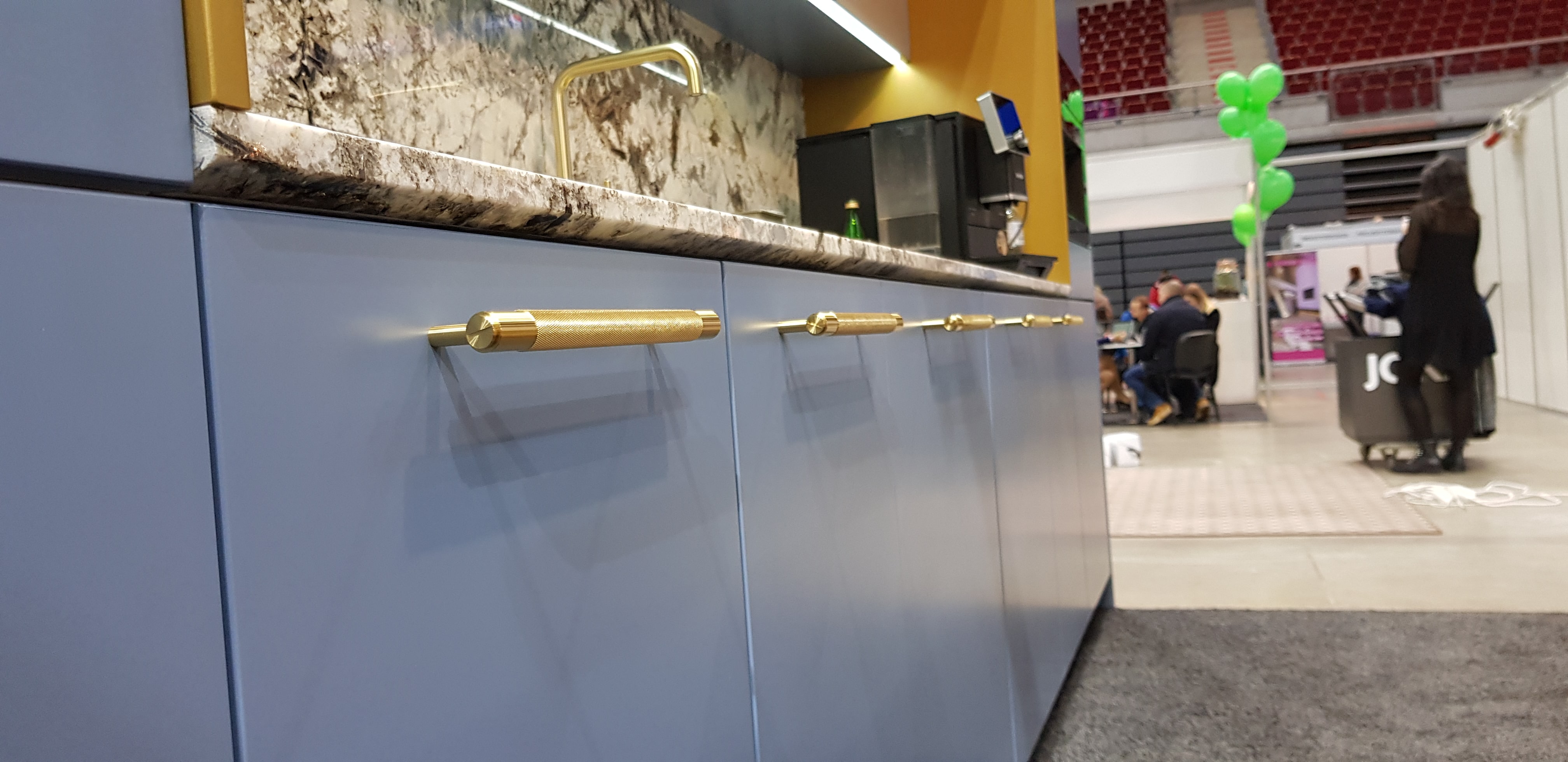 В центре зала все привлекли внимание стенда SONIK из Эльблонга, который мы с удовольствием создали. Благодаря уникальным дополнениям из нашего ассортимента, таким как латунные ручки от Buster и Punch и подвесные, продолговатые лампы, мы придали построенному пространству волшебный и привлекательный вид.