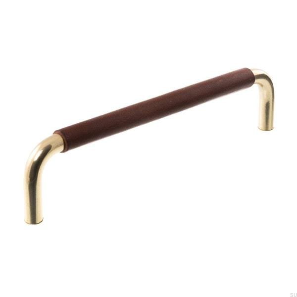 Продолговатая мебельная ручка LS 7353 96 Полированное золото с темно-коричневой кожей