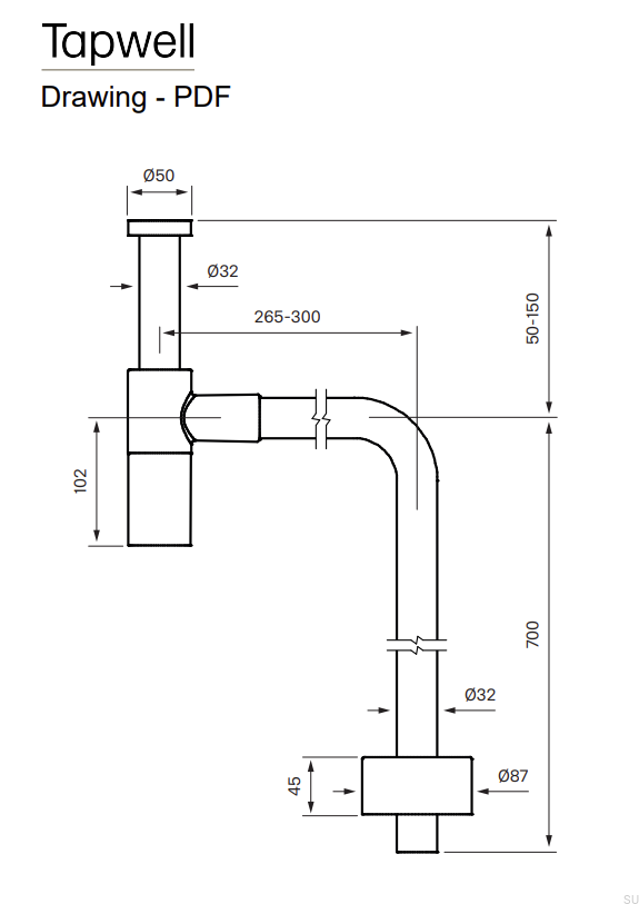 Сифон для умывальника с L-образной трубкой XA100 Латунь Черный Хром